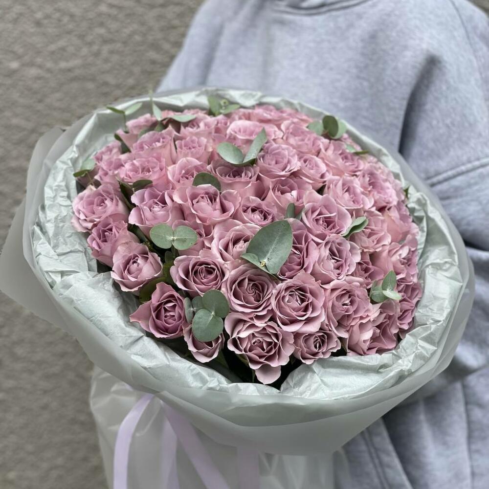 Букет из 51 розы 40 см в оформлении.