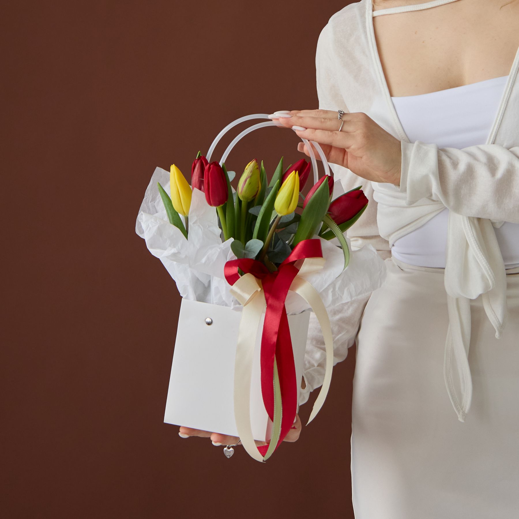 Композиция может отличаться от фото. Тюльпаны МИКС собираются из наличия, могут быть другие оттенки