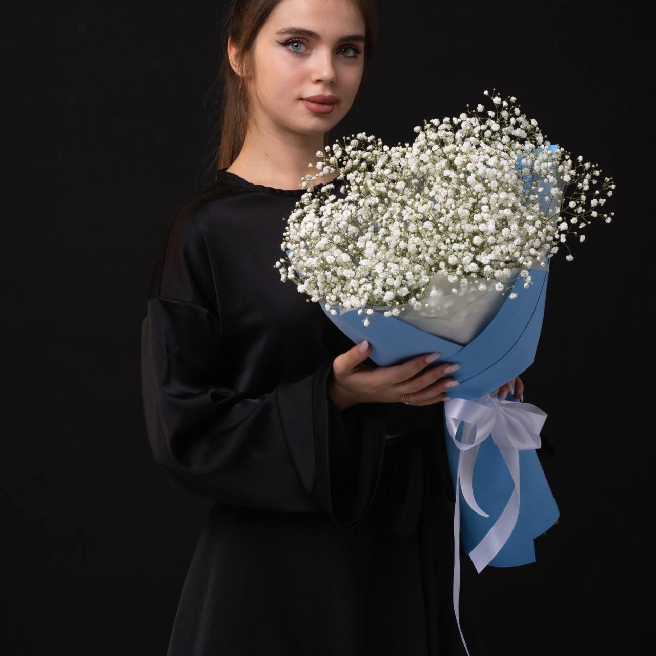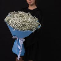 Пышный букет из белой гипсофилы в оформлении.