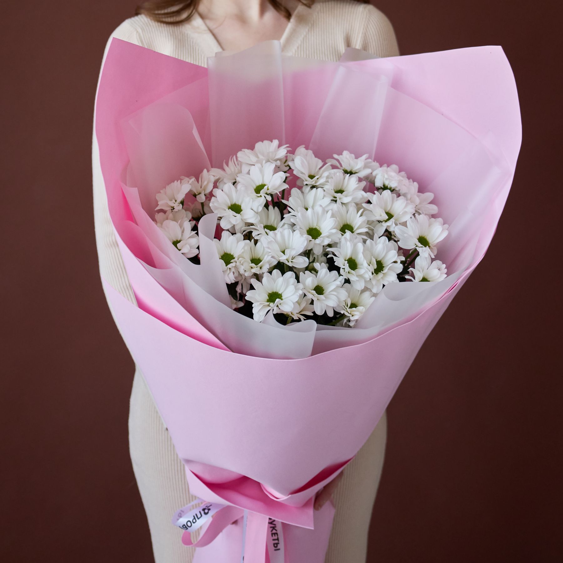 Букет-гигант из ромашковых хризантем в пышном оформлении (от 5 шт)