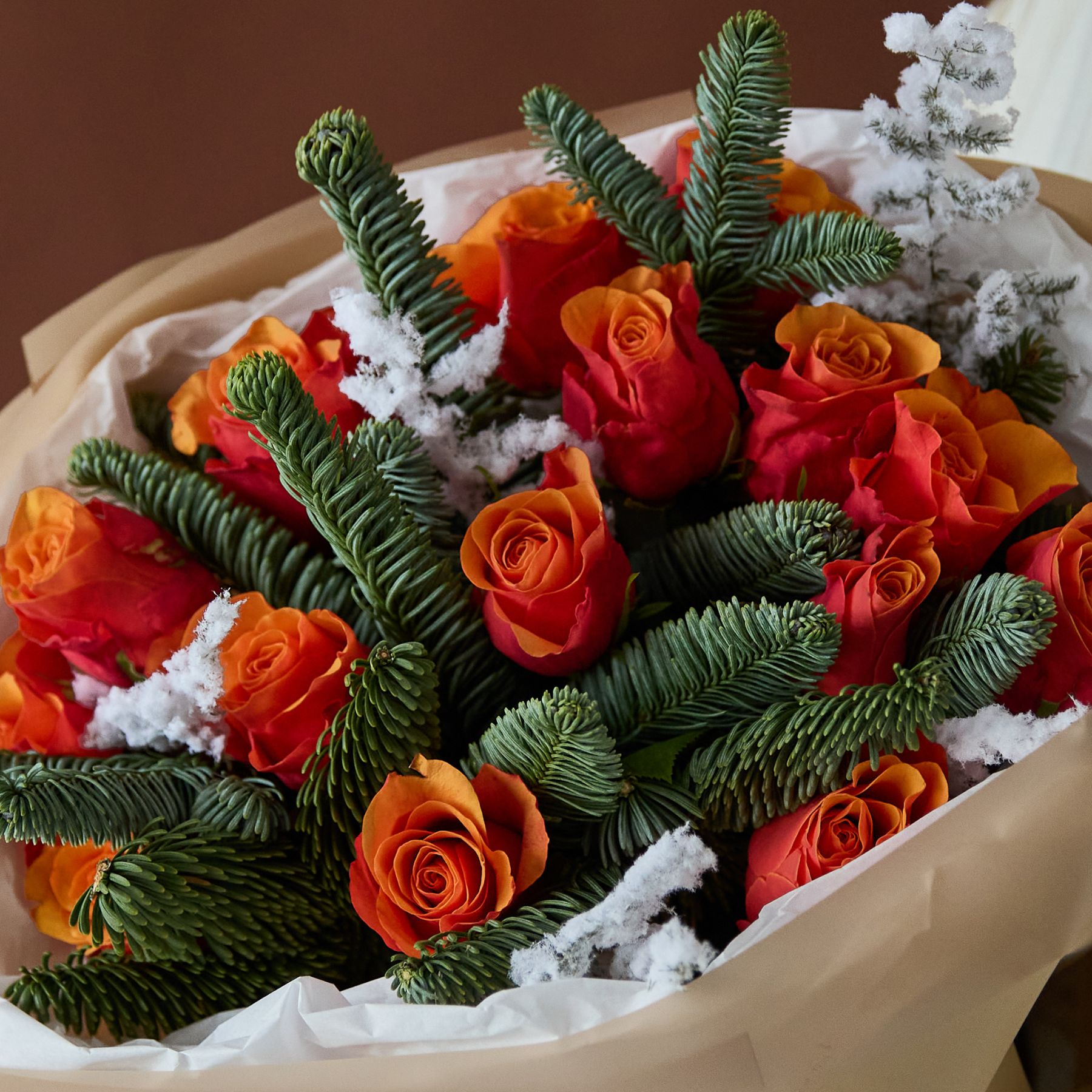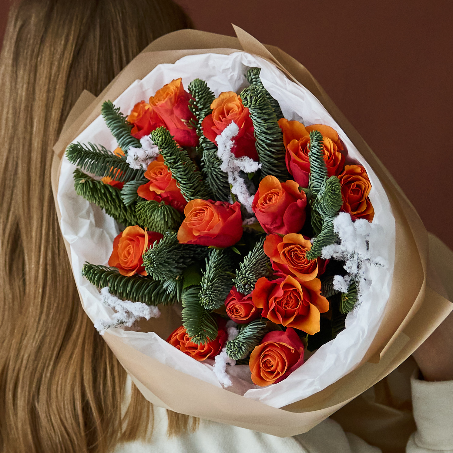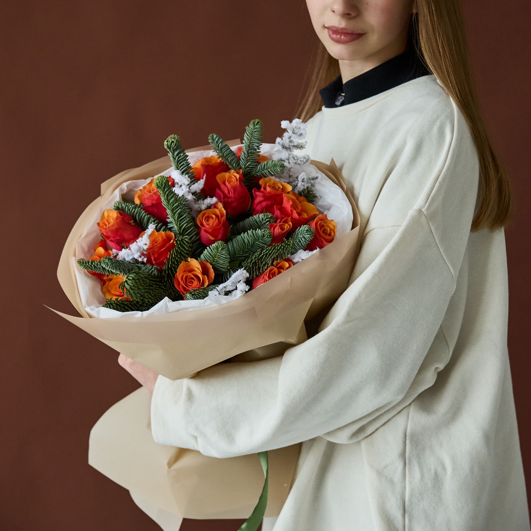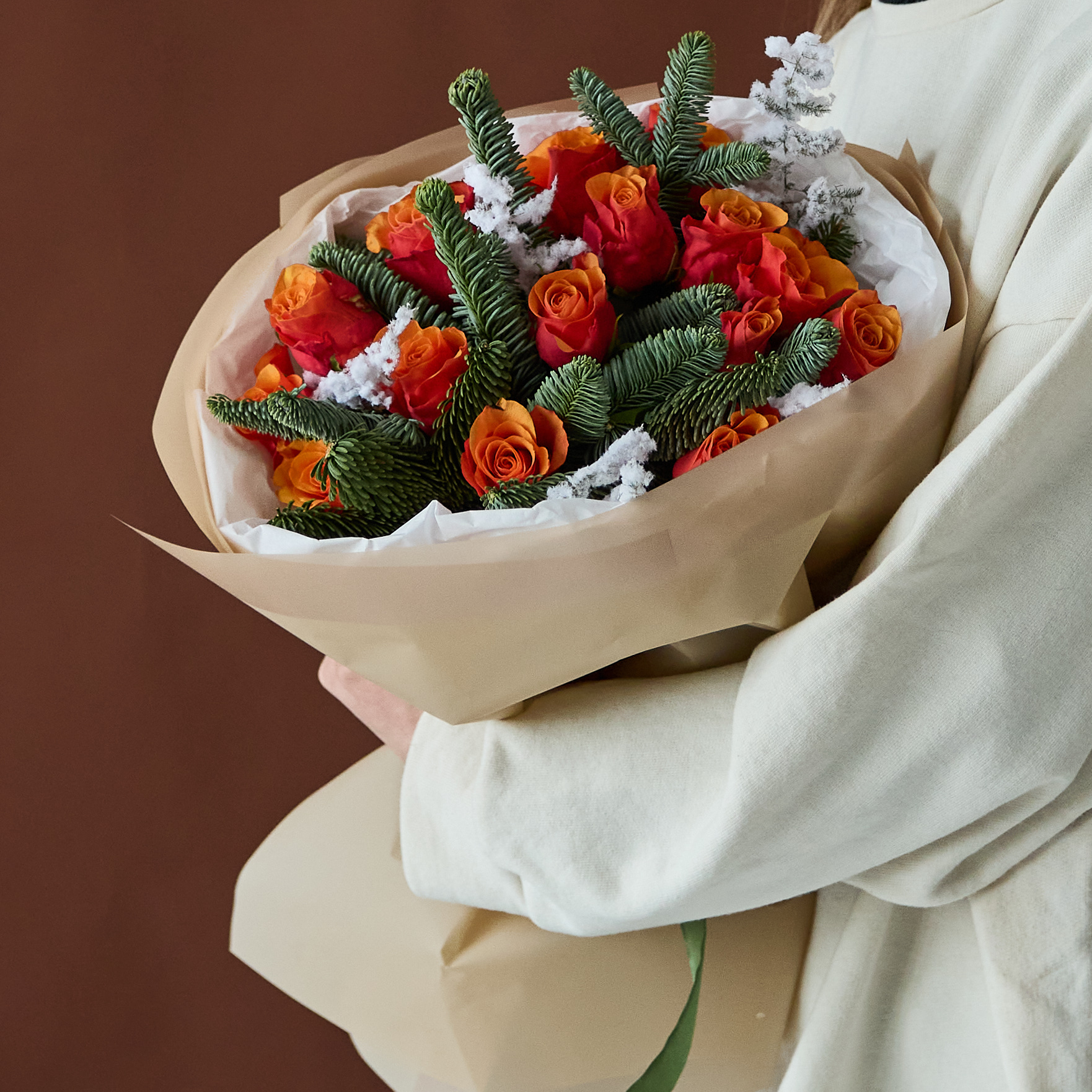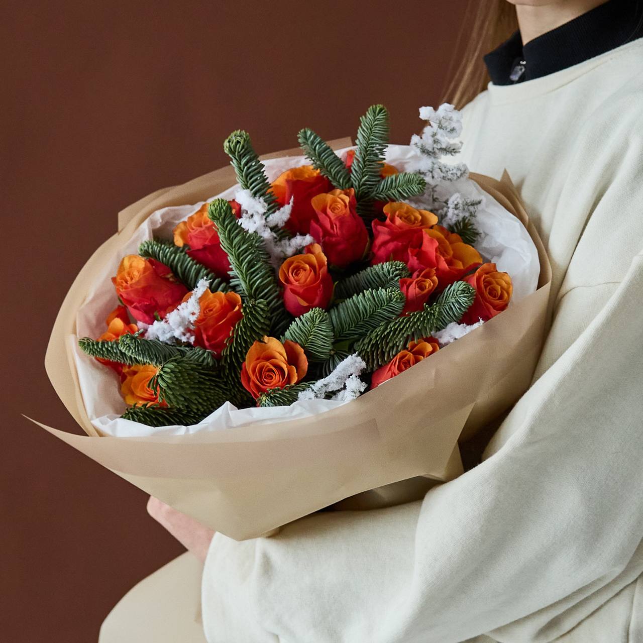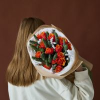 Стильный букет с ароматной датской елью в оформлении.