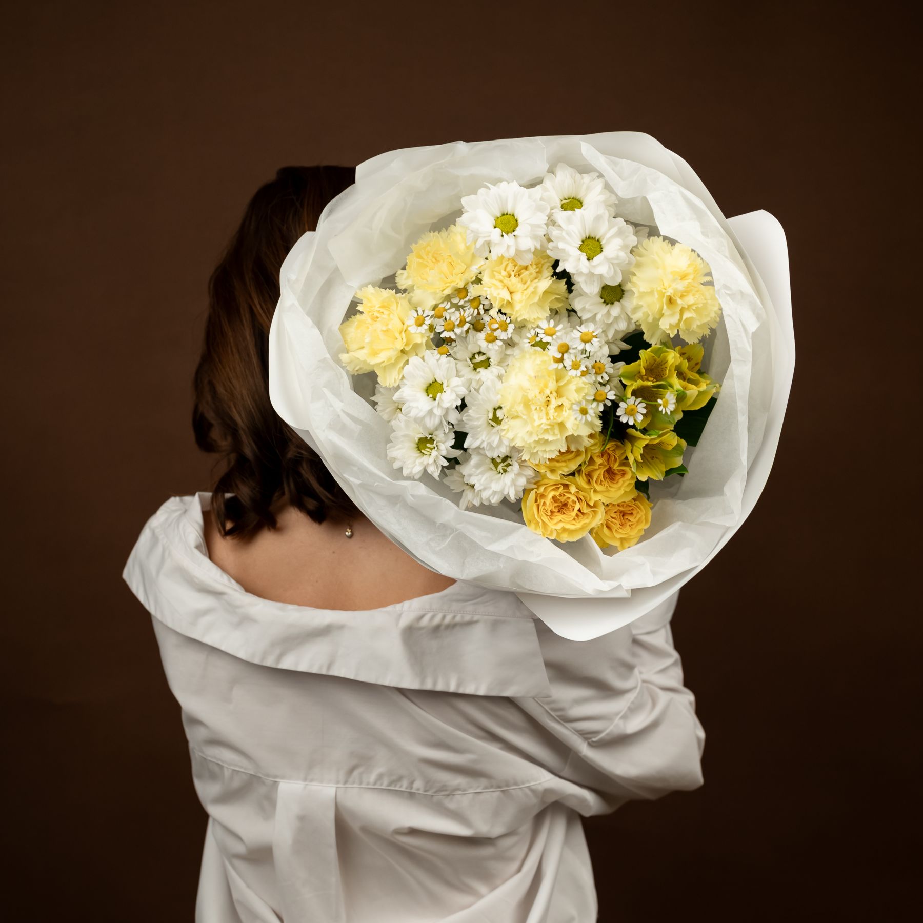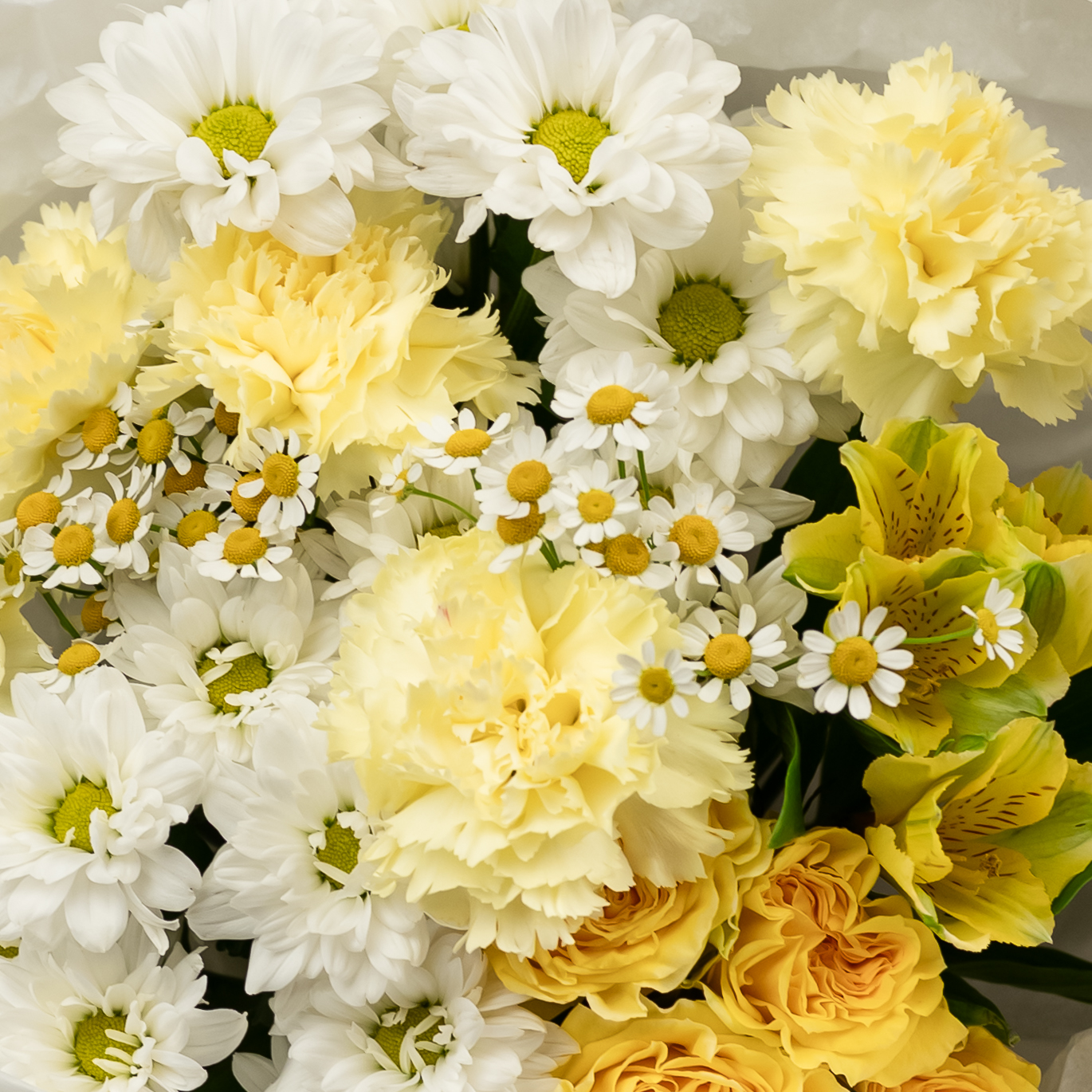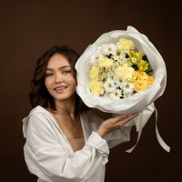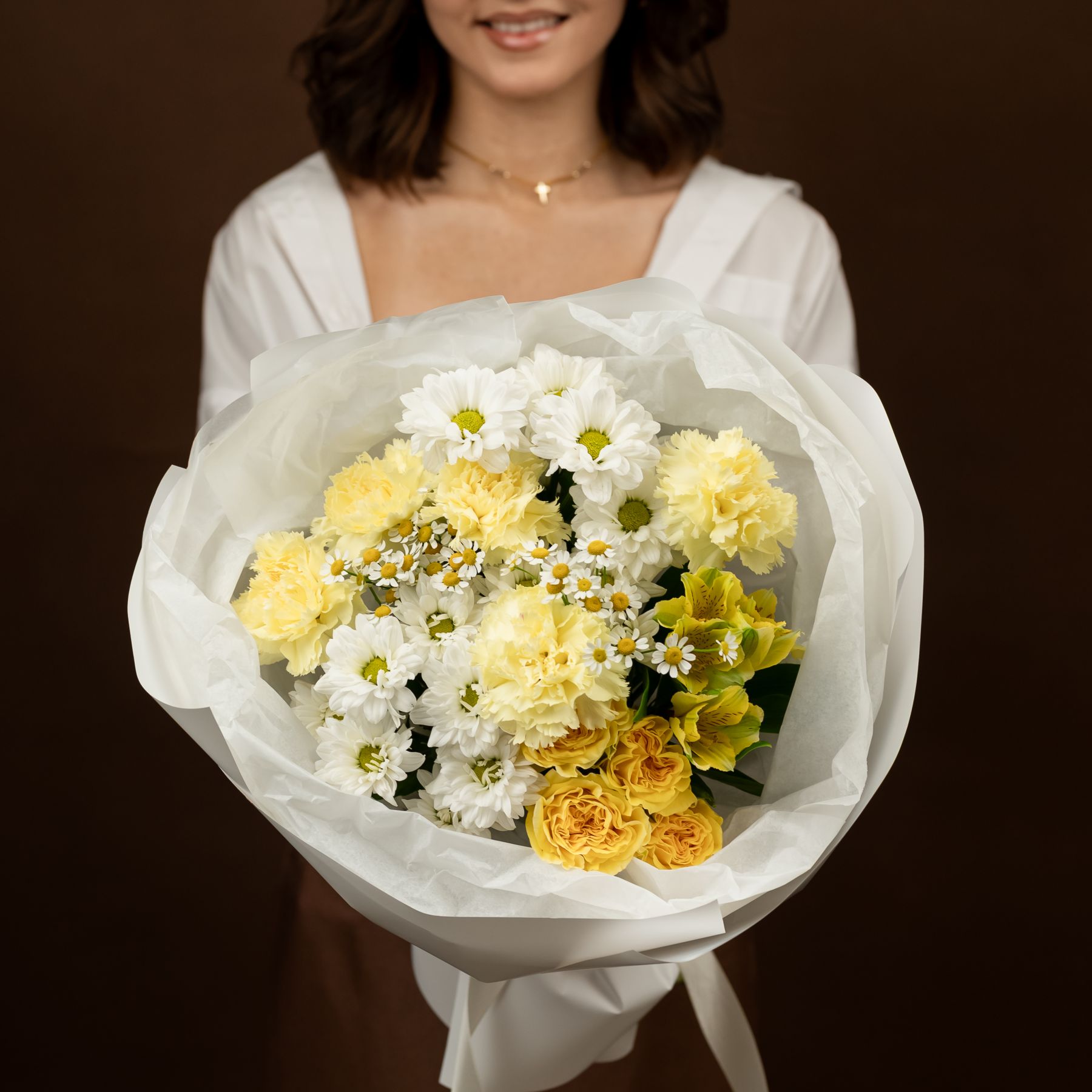 В составе диантус сортовой , хризантема ромашка, роза Кения , альстромерия