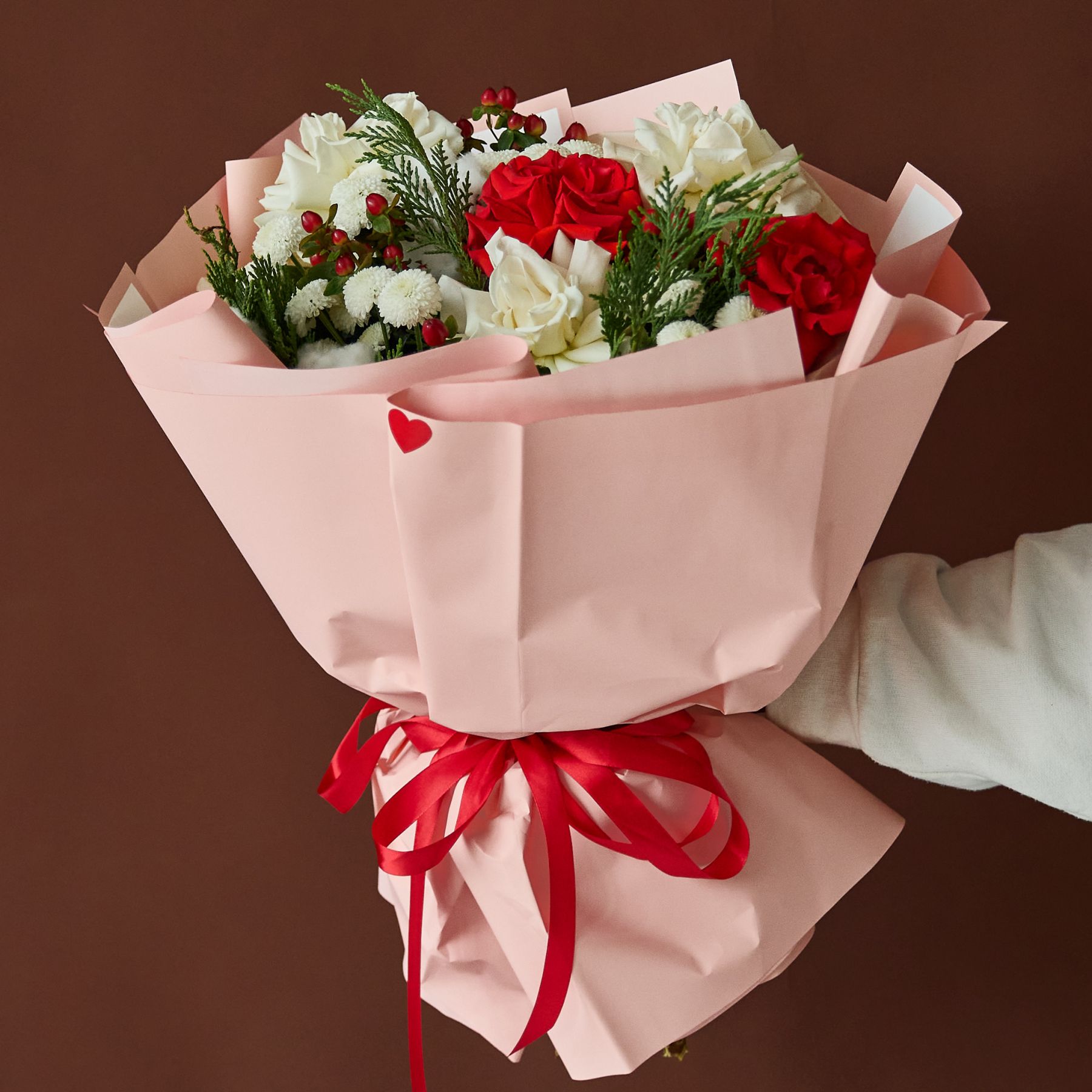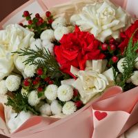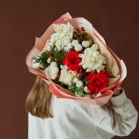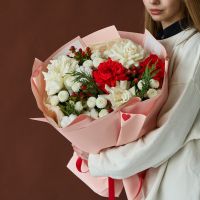 Стильный букет с ароматной датской елью в оформлении.